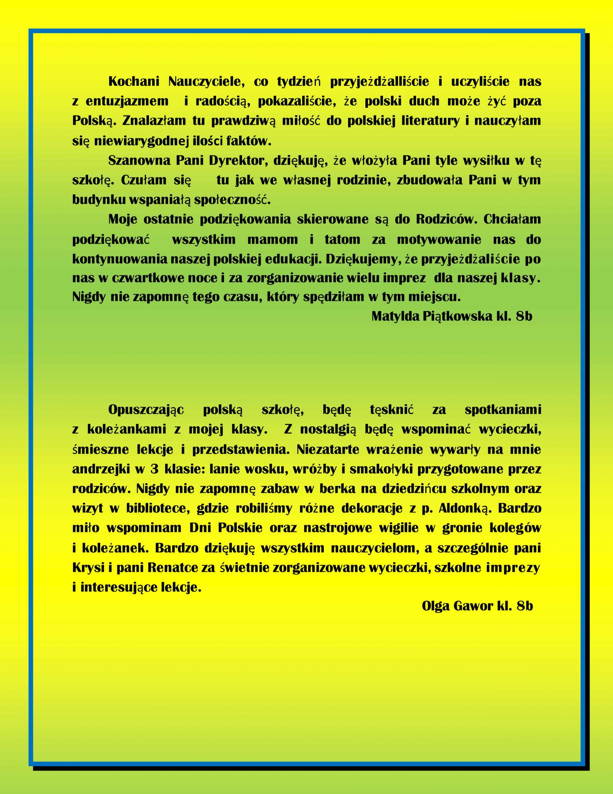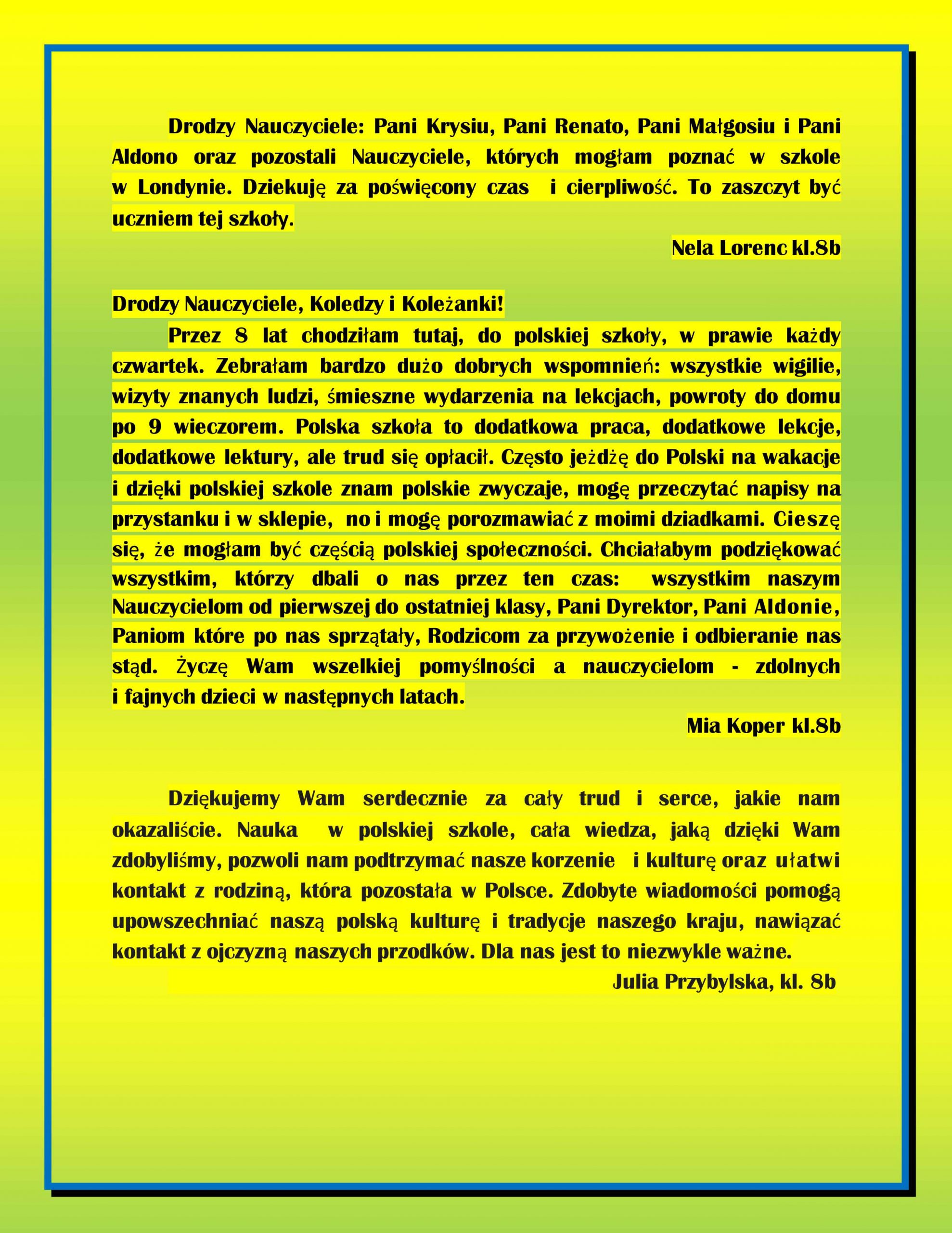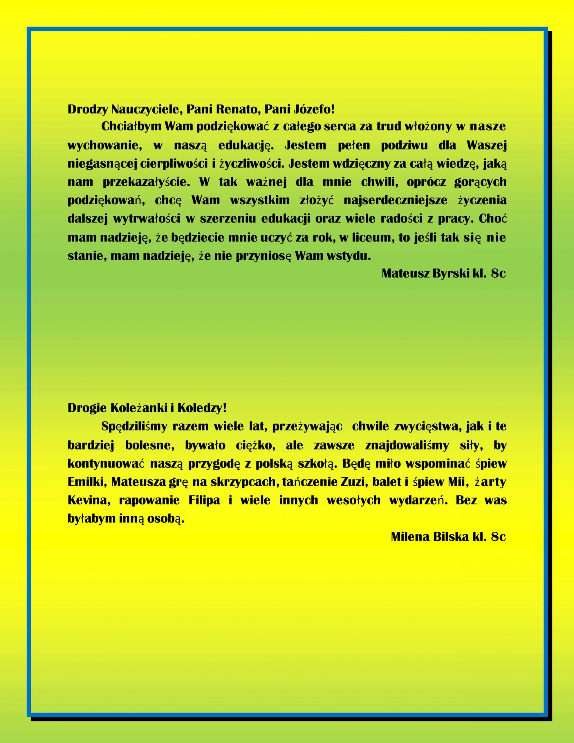 Przemówienia uczniów klas ósmych