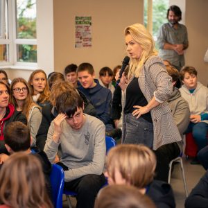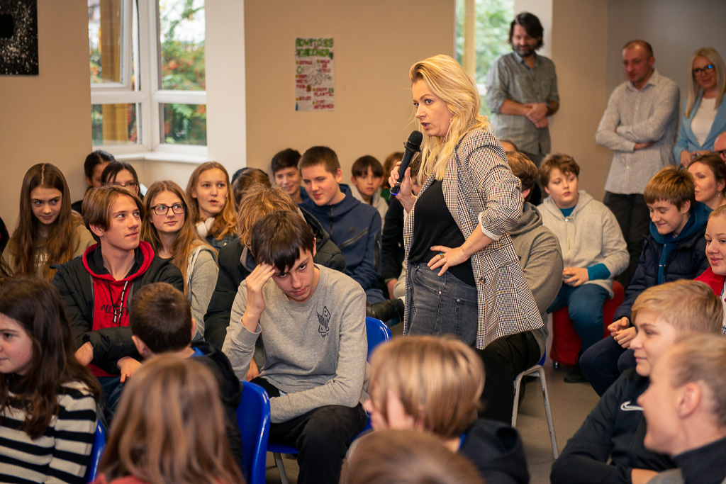 Piosenkarka przyjechała do naszej szkoły w towarzystwie Marcina Kołaczkowskiego, który pracuje jako reżyser i aktor.