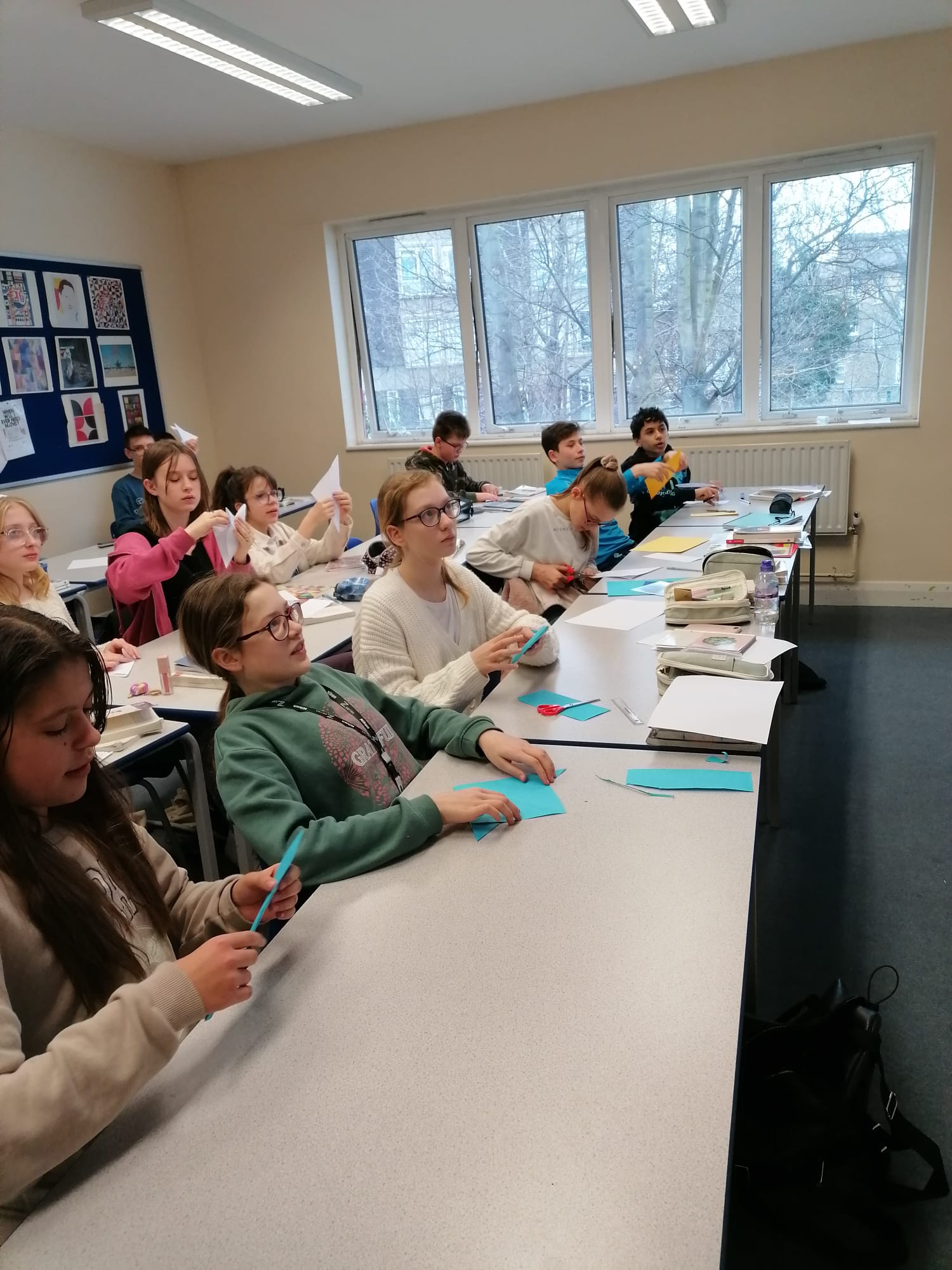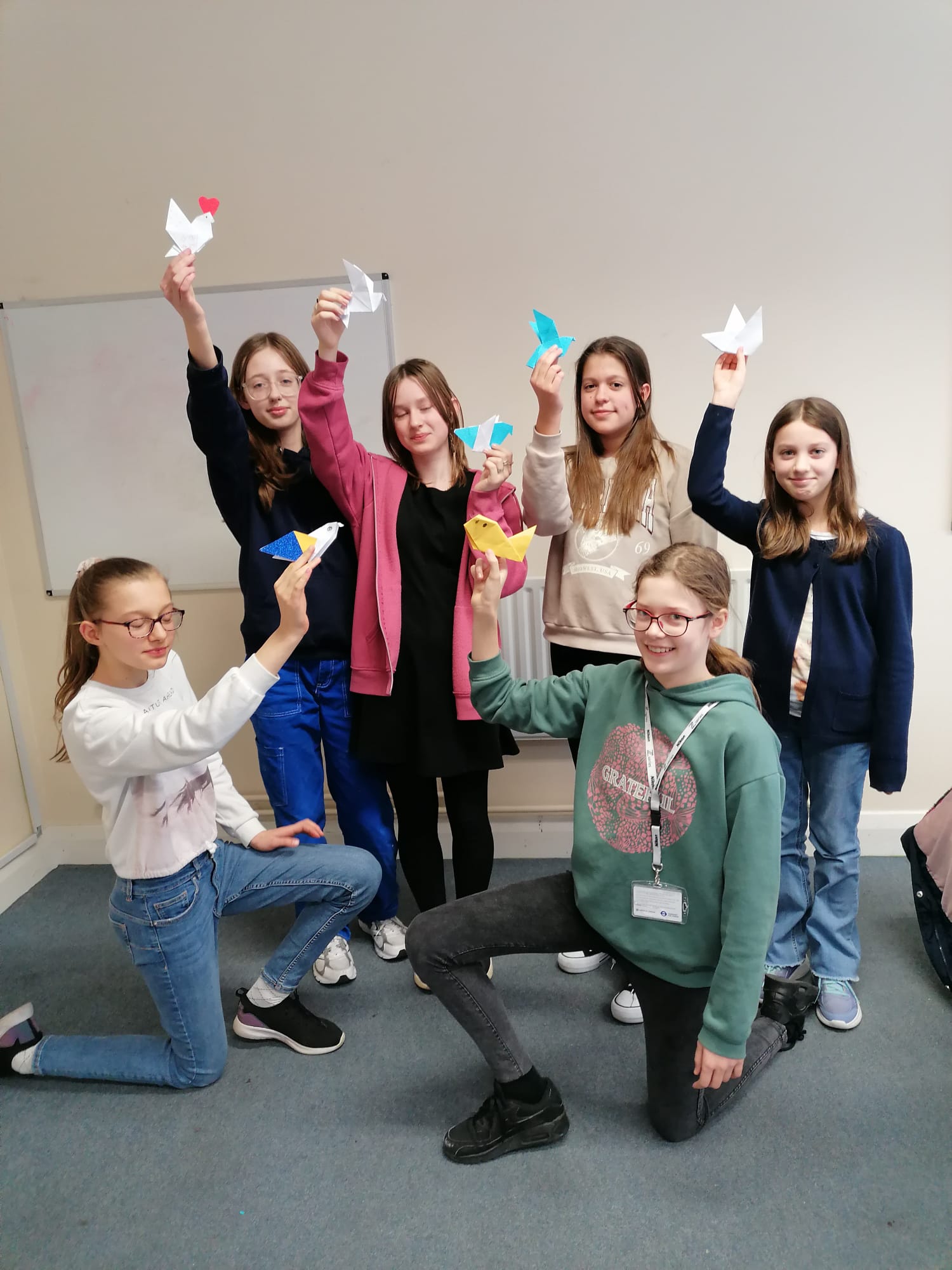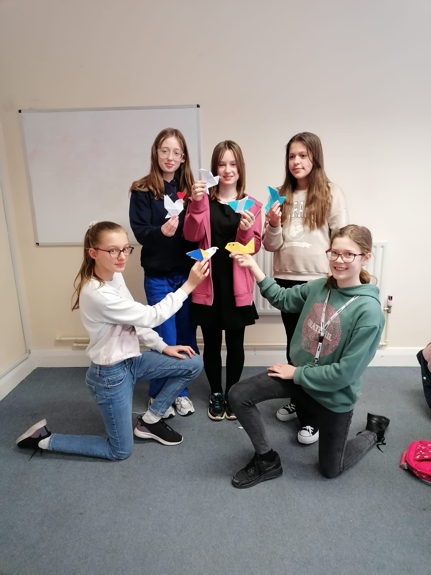 Uczniowie szkoły podstawowej wykonywali podczas lekcji gołąbki pokoju na znak solidarności i jedności z Ukrainą.