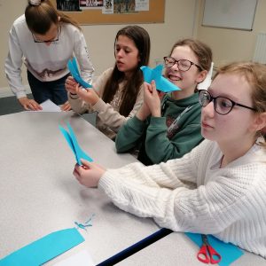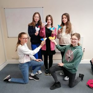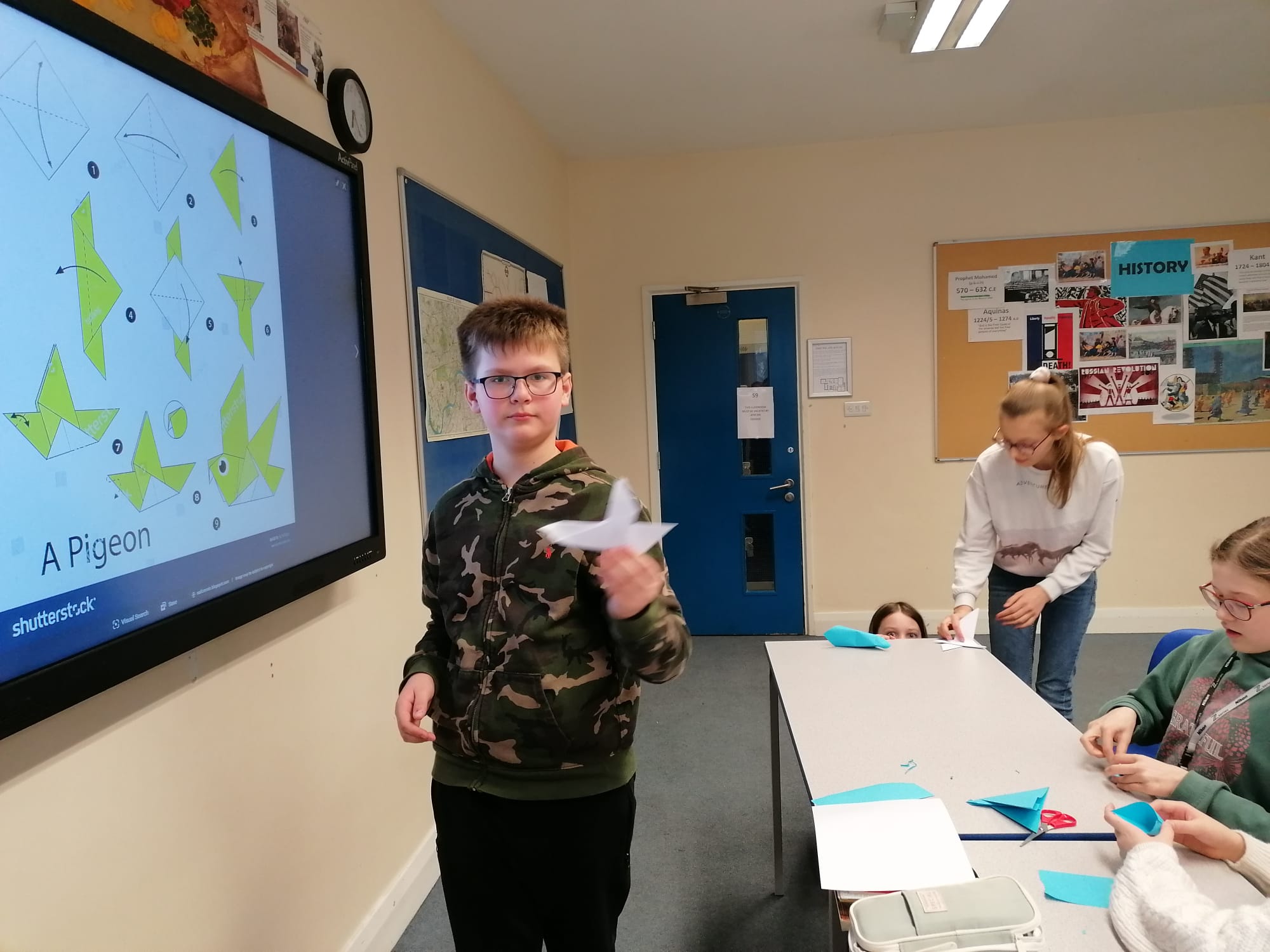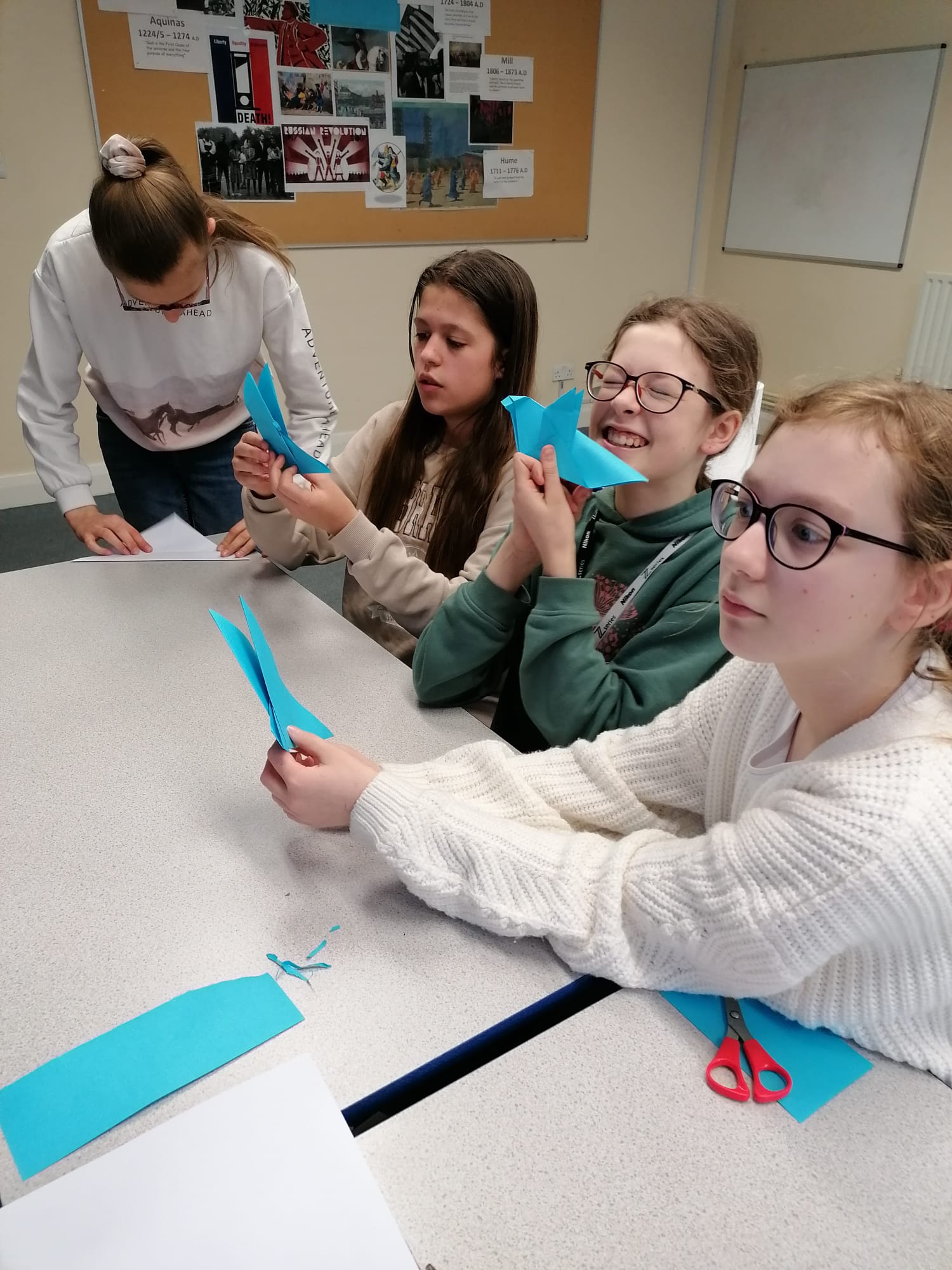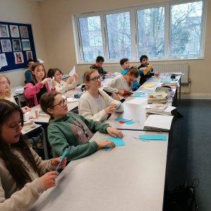 Uczniowie szkoły podstawowej wykonywali podczas lekcji gołąbki pokoju na znak solidarności i jedności z Ukrainą.