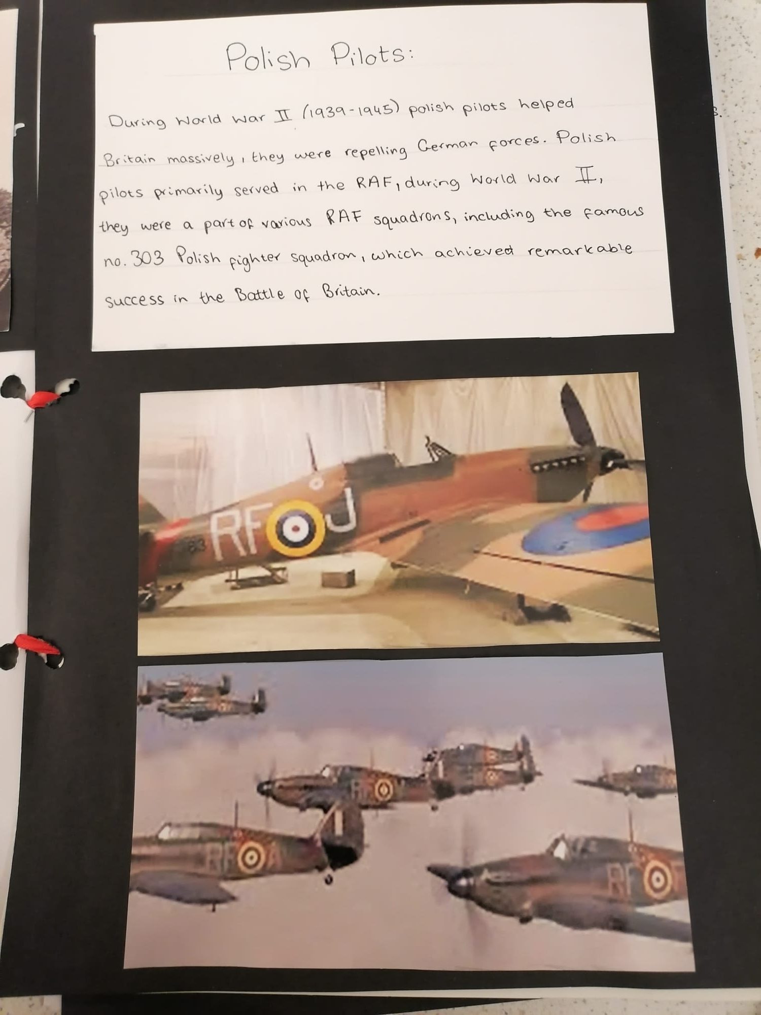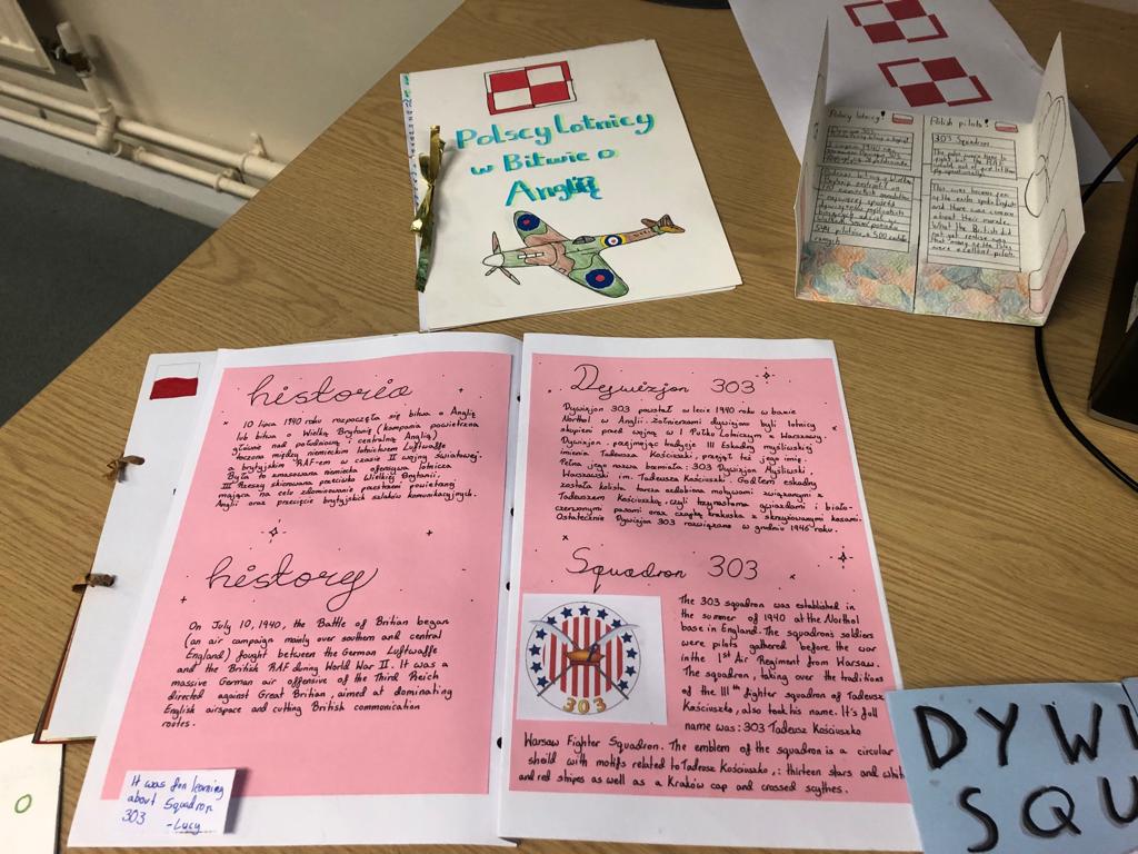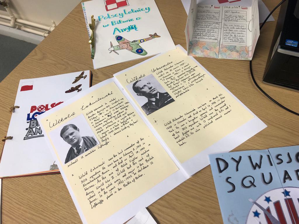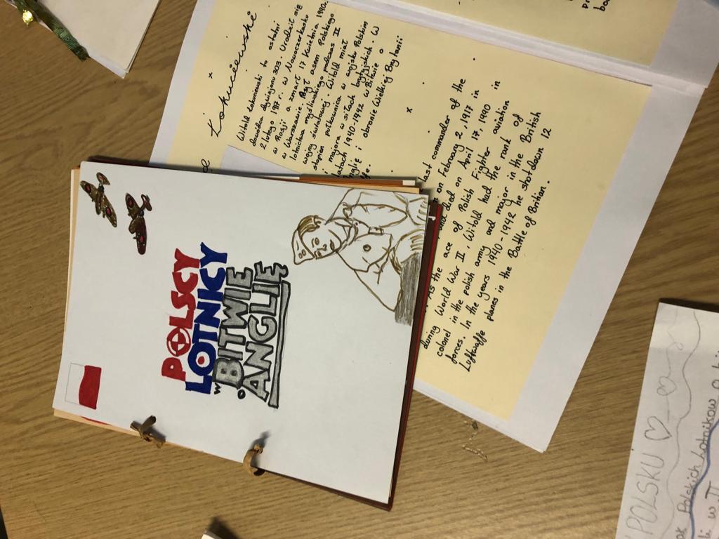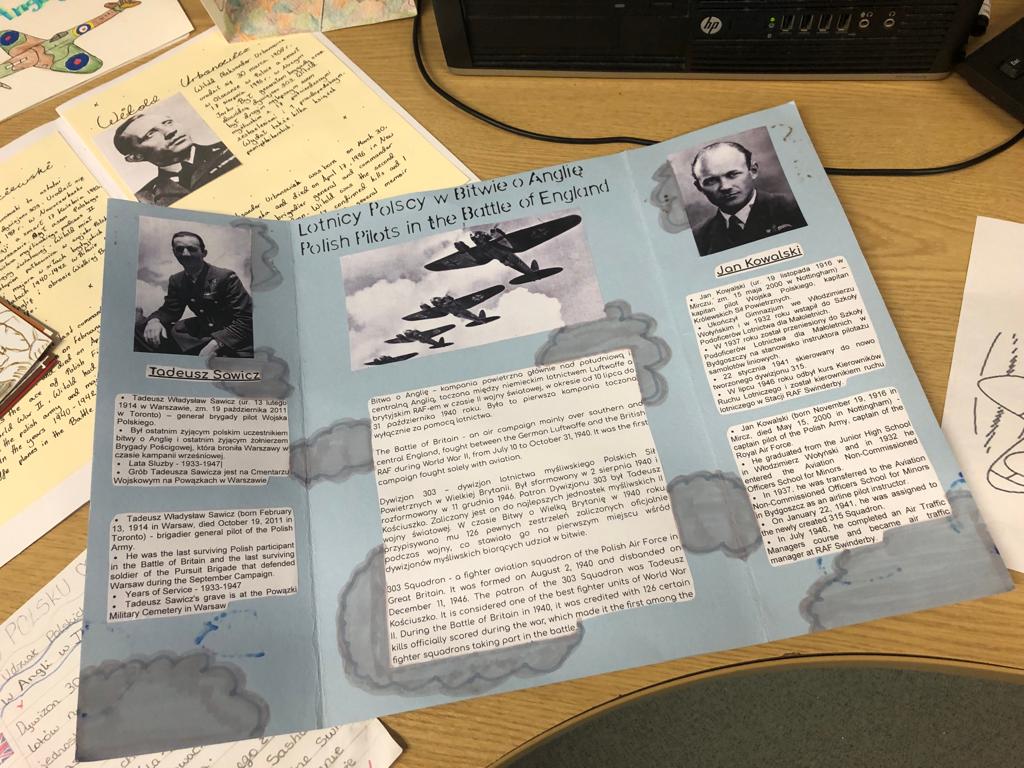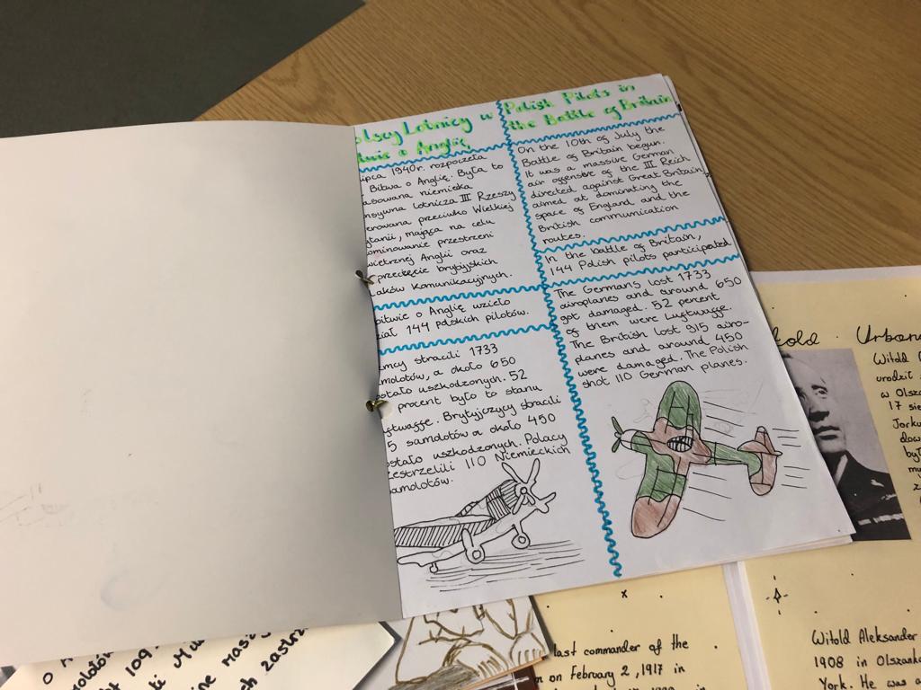 W ramach projektu należało zebrać z różnych źródeł (książek, Internetu, muzeum RAF) informacje o polskich lotnikach,