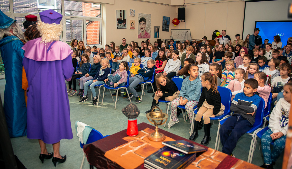 O godzinie 12:30 zaproszono uczniów i nauczycieli do sali teatralnej,