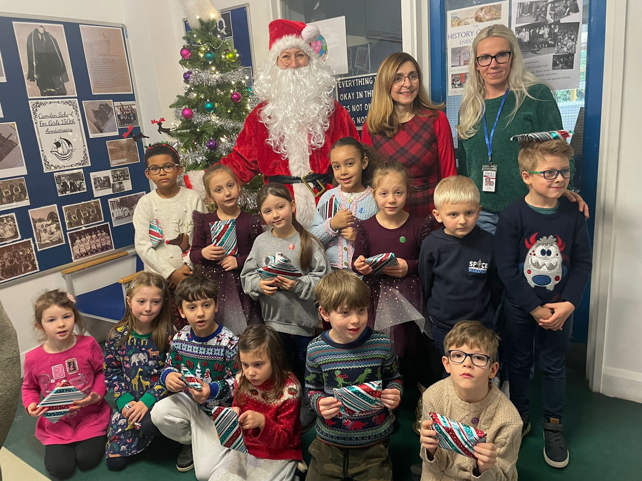 Nasz niebiański gość zgodził się na pamiątkowe zdjęcia z dziećmi podczas rozdawania im prezentów,