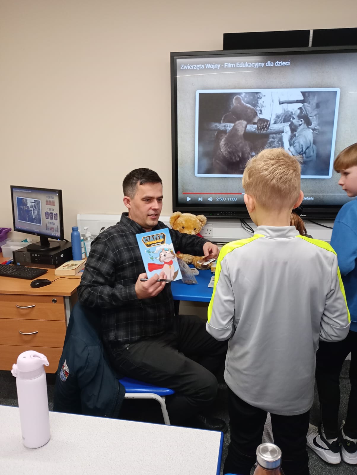 Zwierzęcy bohaterowie książek: Ciapek, Smokey i Wojtek bardzo zainteresowali najmłodszych uczniów.