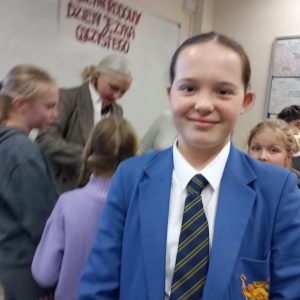 Aktorka niezwykle ciepło i obrazowo podzieliła się z dziećmi swoimi doświadczeniami scenicznymi, podkreślając, jak ważne jest w życiu dążenie do celu. Wyjaśniła uczniom, w jaki sposób przełamuje się lęk przed publicznymi wystąpieniami, co zrobić, aby zwalczyć tremę i jakie są metody na opanowanie pamięciowe dłuższych tekstów.