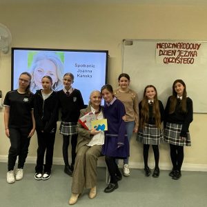 Posumowaniem obchodów Międzynarodowego Dnia Języka Ojczystego było w tym roku szkolnym spotkanie uczniów z Panią Joanną Kańską – aktorką znaną i lubianą wśród polskiej oraz brytyjskiej publiczności.