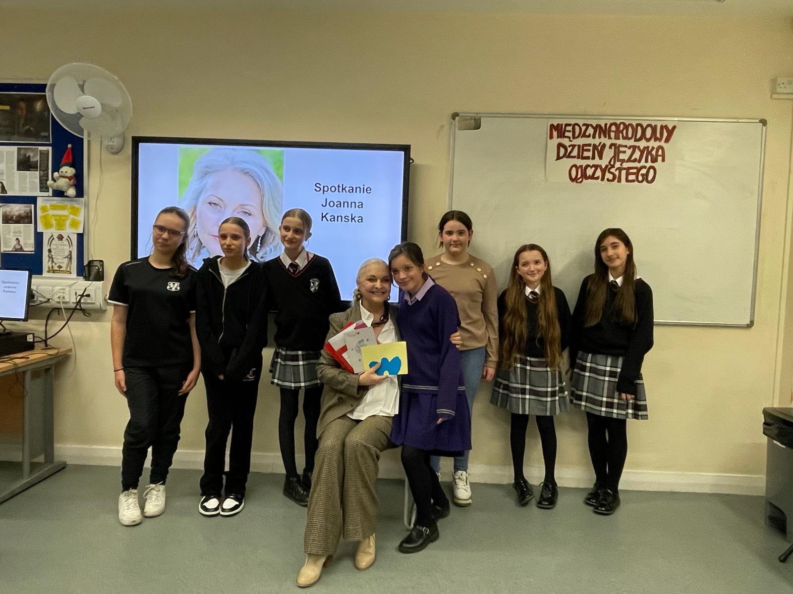 Posumowaniem obchodów Międzynarodowego Dnia Języka Ojczystego było w tym roku szkolnym spotkanie uczniów z Panią Joanną Kańską – aktorką znaną i lubianą wśród polskiej oraz brytyjskiej publiczności.