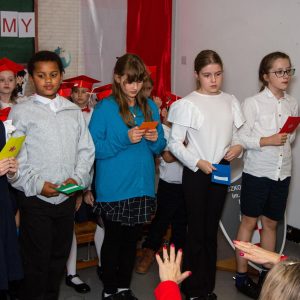W rolach konferansjerów wystąpili uczniowie z klas 4, 5 i 7,