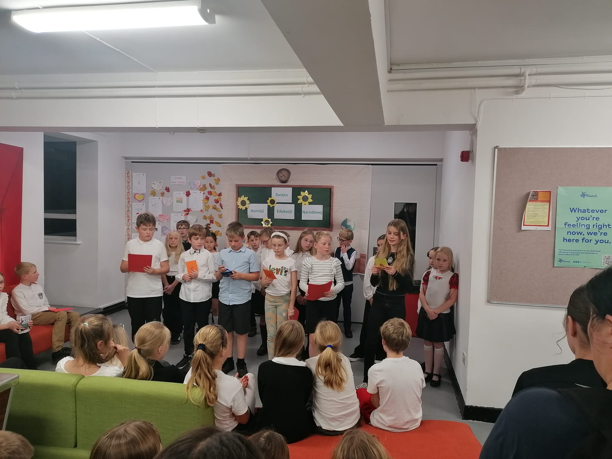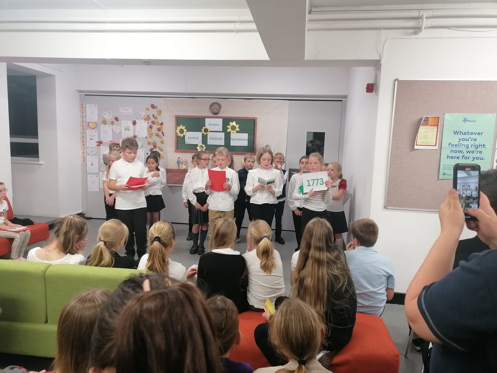 Podczas uroczystości nie zabrakło życzeń dla nauczycieli, a uczniowie mieli okazję zaprezentować swoje talenty wokalne.