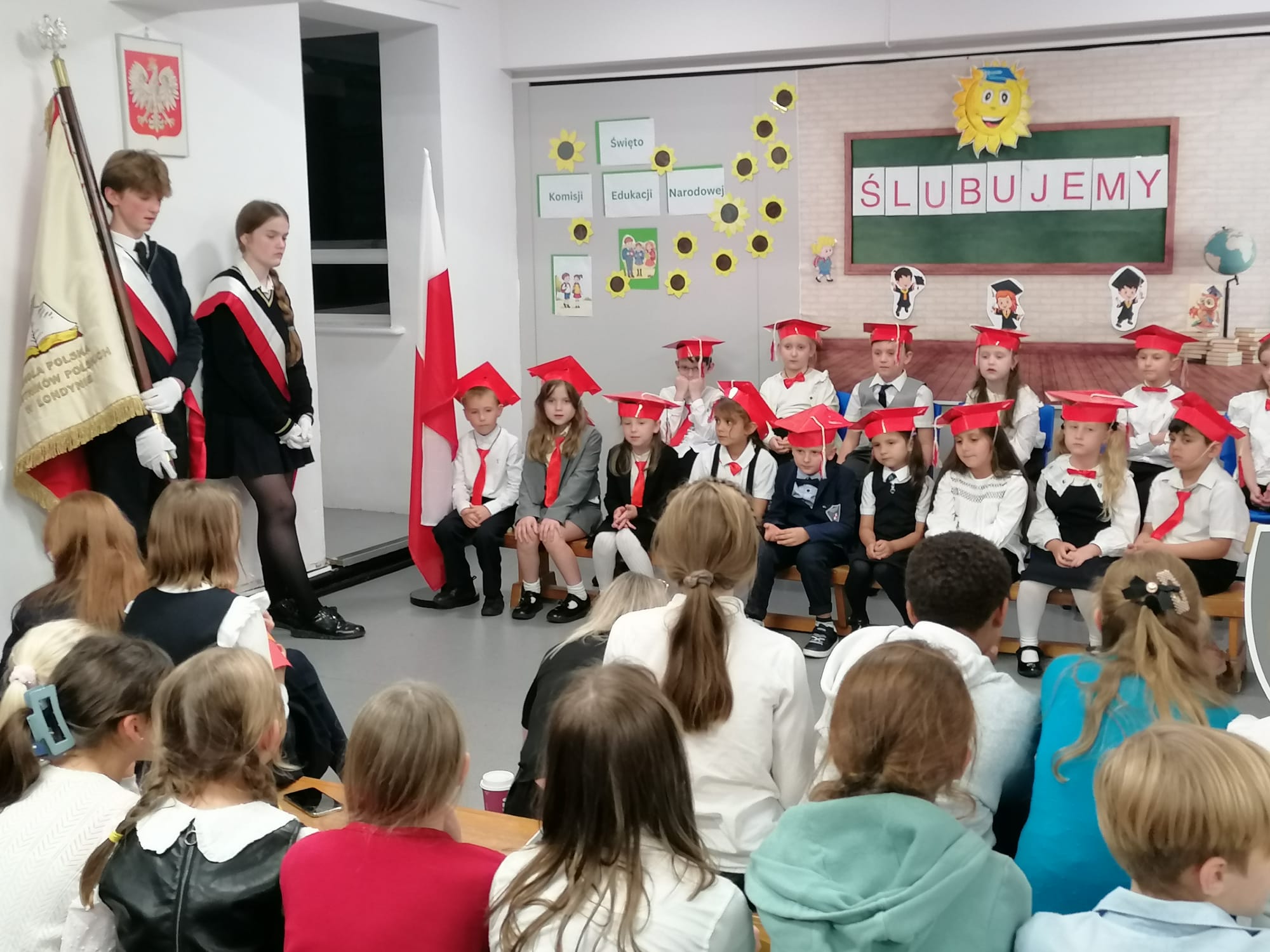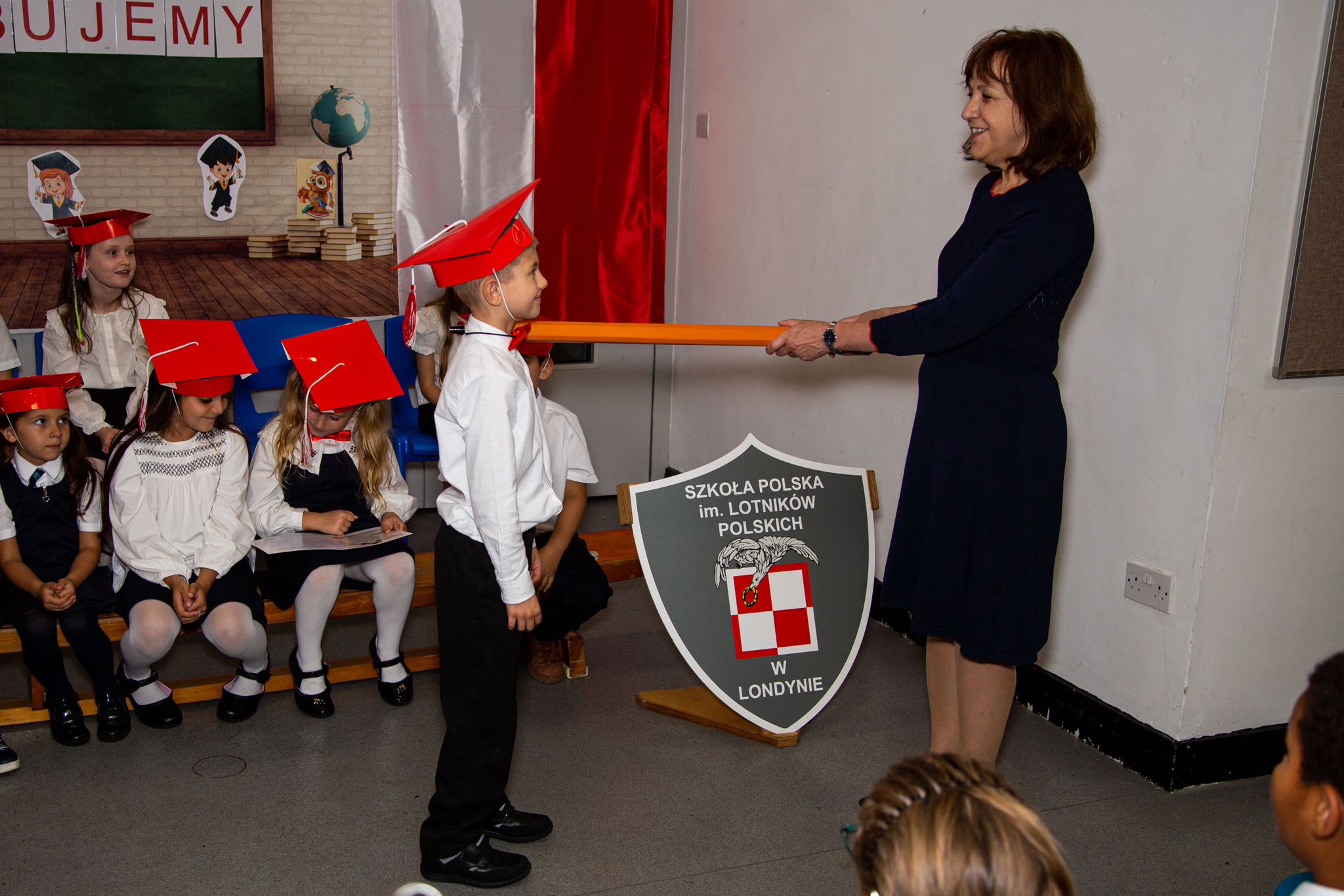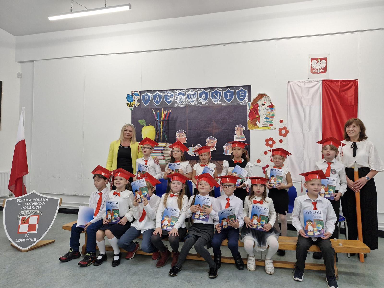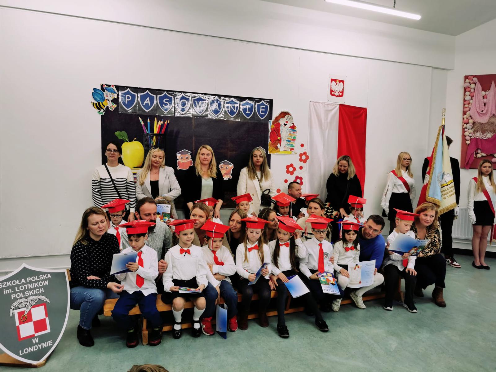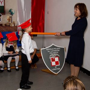 mali uczniowie zostali symbolicznie przyjęci do grona społeczności uczniowskiej Szkoły Polskiej im. Lotników Polskich przy Ambasadzie RP w Londynie.