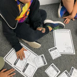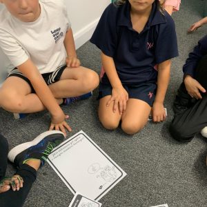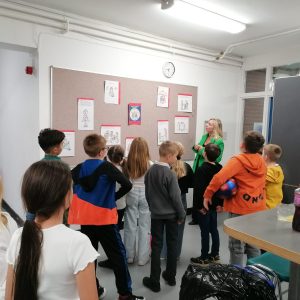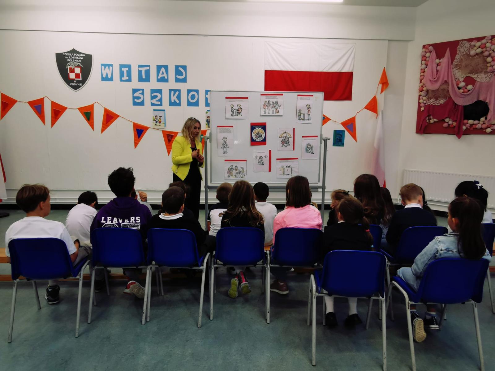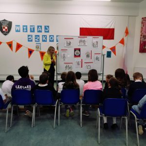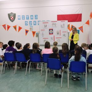 Na zdjęciach pani Joanna Kalisz i uczniowie klas I – III podczas zajęć o standardach ochrony dzieci.
