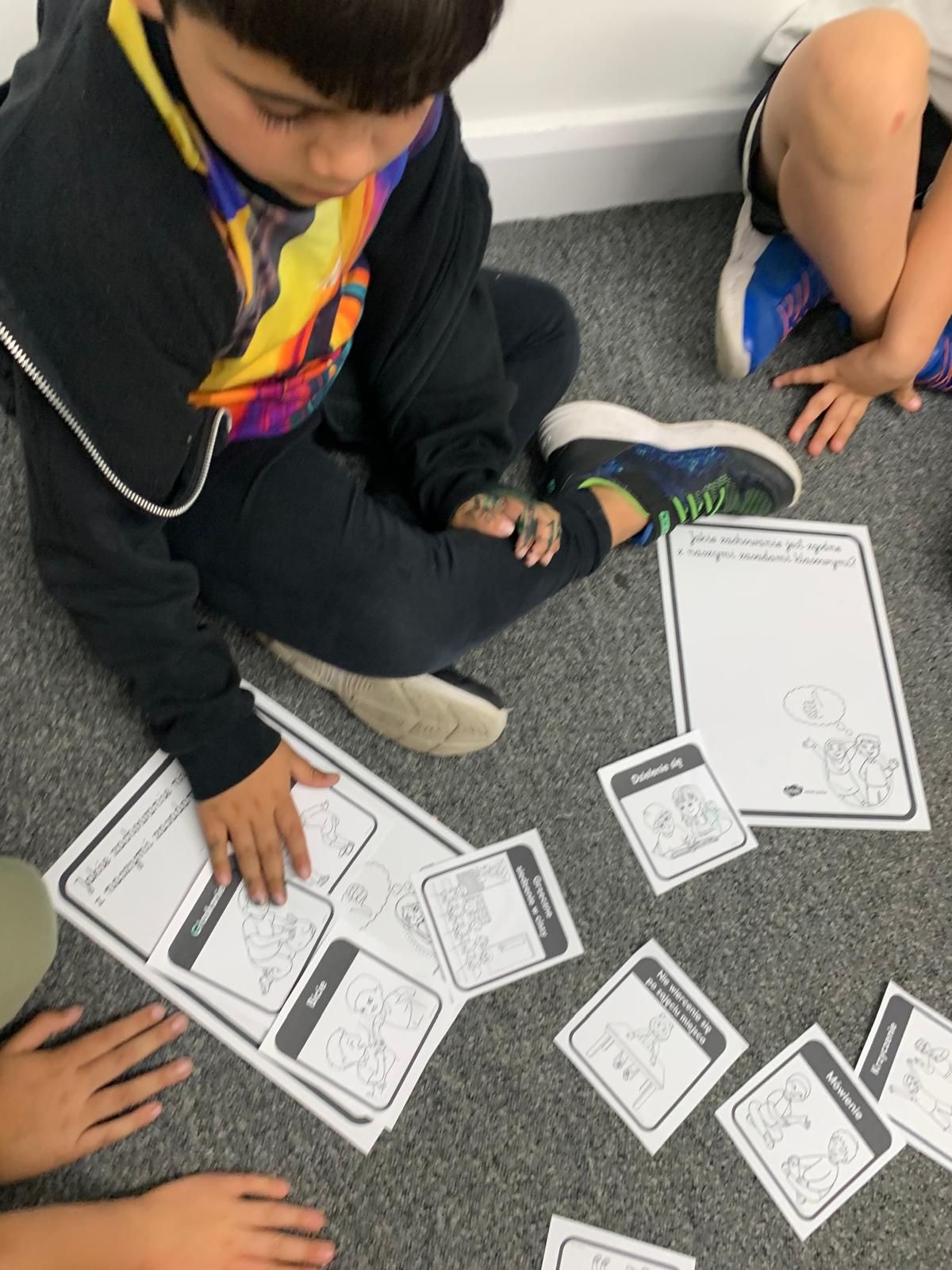 Przedstawione zostały sposoby reakcji na przemoc za pomocą filmów edukacyjnych dla dzieci oraz kart pracy.