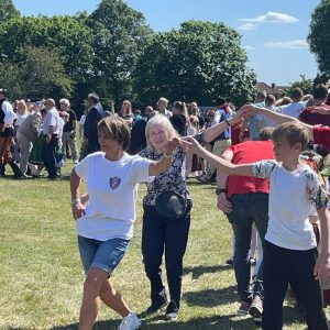 Na zdjęciach widać m.in. p. Małgosię z Oliverem kroczących w rytm poloneza na otwarcie festynu. Brawo!