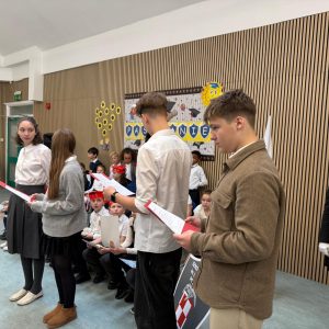 Rodzice pierwszoklasistów również uczestniczyli w tym szczególnym dniu – złożyli uroczyste przyrzeczenie, zobowiązując się do przestrzegania Standardów Ochrony Małoletnich, co podkreśla ich zaangażowanie w wychowanie i bezpieczeństwo swoich dzieci.