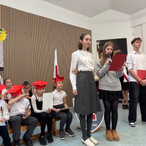 Uroczystość zakończyła się przemówieniem Pani Dyrektor, która życzyła uczniom wielu sukcesów w nauce oraz dalszego rozwoju. Każdy pierwszoklasista otrzymał pamiątkowy dyplom i upominek ufundowany przez Radę Rodziców, co stanowiło miłe podsumowanie tego niezapomnianego dnia.