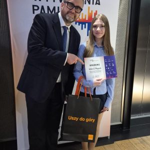 Z ogromną dumą informujemy o wyjątkowym osiągnięciu uczennicy naszej szkoły – Wiktorii Wygody, która otrzymała wyróżnienie w ogólnopolskim konkursie realizowanym w ramach projektu „Wytwórnia Pamięci”.